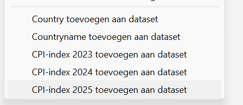 Vervolgens moet het programma weten wat iedere relevante kolom betekend. Middels rechtermuisklik binnen de data wordt de kolom groen en krijg je een keuze menu waarmee je kunt aangeven wat de betreffende kolom betekend: