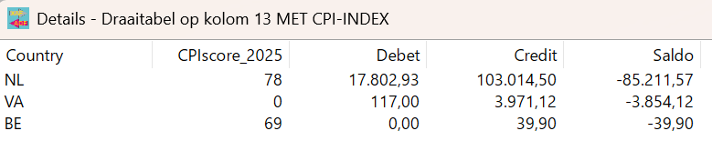 - Controle op totalen (huidig jaar / vorig jaar)