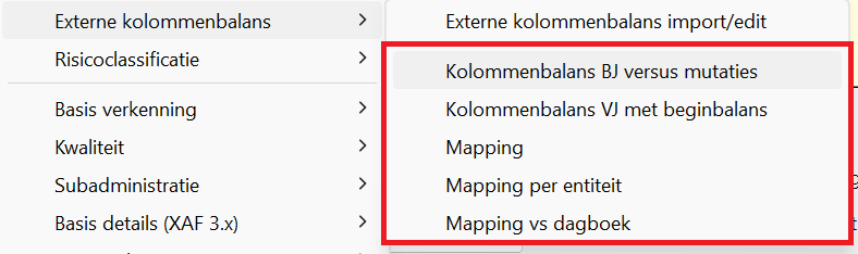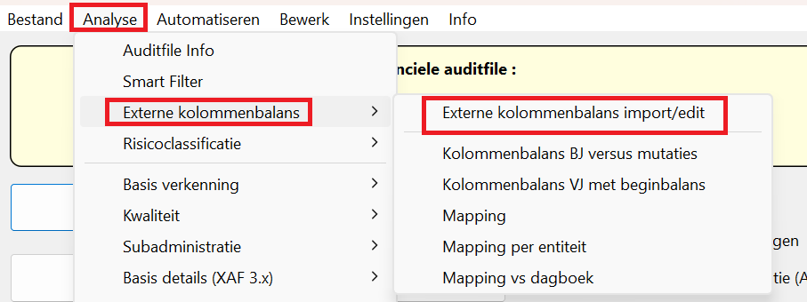 👉 Analyse → Externe kolommenbalans → import/edit