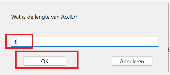 Voorloopnullen toevoegen doen we door de betreffende knop te kiezen. je krijgt dan een pop-up waarin je het aantal tekens waaruit een grootboekrekening is opgebouwd kunt ingeven. in dit geval 4.