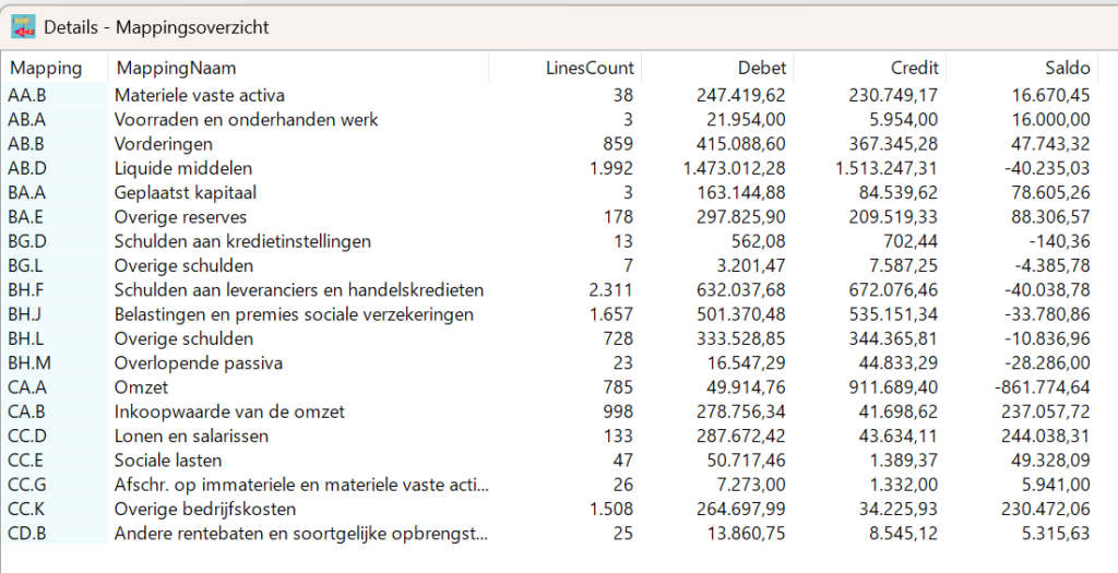 Dit is met name handig wanneer je werkt met tools zoals Caseware Working Papers, waarbij de mapping naar jaarrekeningposten vaak al aanwezig is.