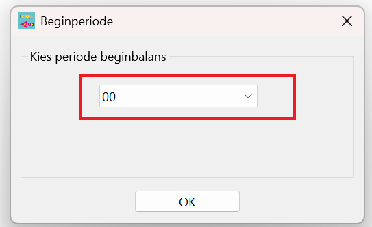 Een andere analyse welke wordt uitgewerkt betreft de aansluiting beginbalans. Na kiezen ‘Kolommenbalans VJ met beginbalans’ krijg je eerst een pop-up om beginbalans periode te selecteren. Meestal periode 0 of 00. In die gevallen zal de periode al goed staan. Soms moet periode handmatig gekozen worden.